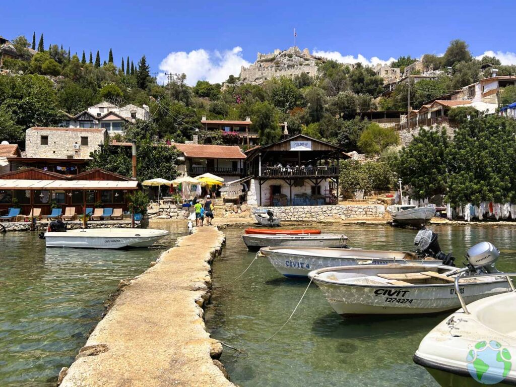 Este es un extra que no incluyen todas las excursiones. Si el itinerario lo permite algunos barcos hacen parada en Simena, un pequeño pueblo costero al que solo se puede llegar por mar. Aquí puedes subir a un castillo con vistas impresionantes o disfrutar del famoso helado casero de la zona elaborado con sabores como pétalos de rosa, lavanda o higo. Nosotros sí que paramos en Simena y mereció la pena pasear por allí y tomarnos algo en uno de sus bares con vistas al mar.