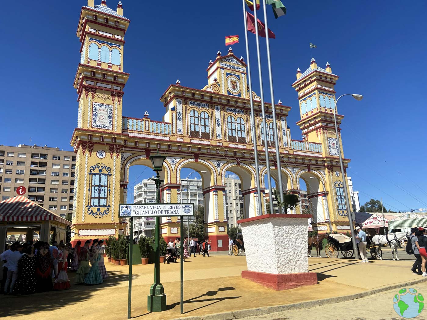Al contrario, para irte de la Feria después de todo un día de diversión, la mejor opción es ir hasta la parada de taxi que hay justo en la entrada principal del recinto. Acceder al recinto ferial por la Portada, sí amig@, esa puerta que has visto iluminarse millones de veces por la televisión es todo un momentazo. Estar allí es como estar en el front roow de la Fashion Week flamenca, pues por allí acceden miles de personas luciendo sus mejores galas, cada cual más espectacular.