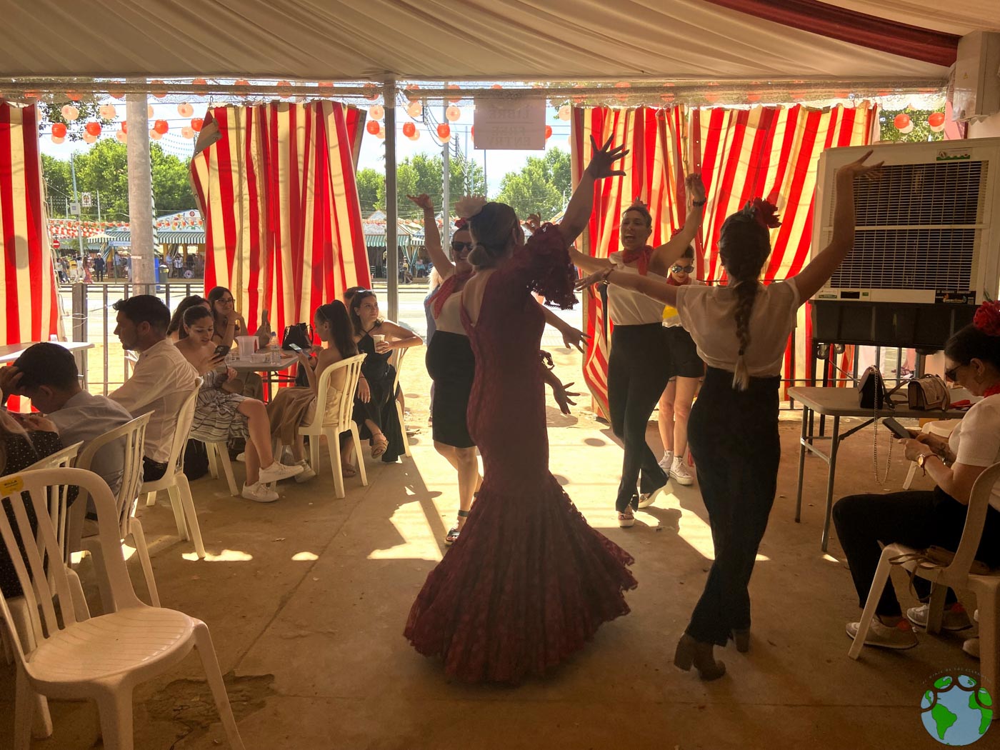 Si no tienes a nadie que te enseñe los pasos básicos antes de visitar la Feria, también puedes ver tutoriales en Youtube y aprender por tu cuenta, pues en la feria se escuchan sevillanas las 24 horas del día.