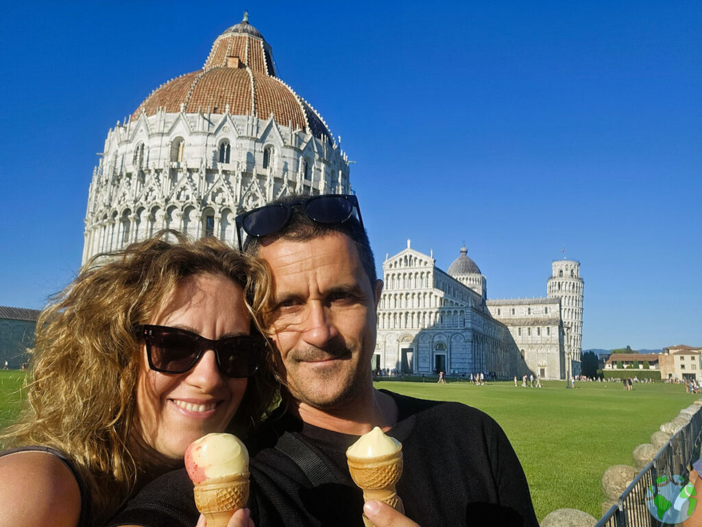Y como toda película romántica con final feliz, nuestra aventura Toscana acabó a los pies de un lugar mágico. Con la famosa Torre inclinada de Pisa como telón de fondo nos tomamos uno de esos irresistibles helados que solo hacen en Italia. El decorado perfecto como epílogo de un viaje inolvidable.
